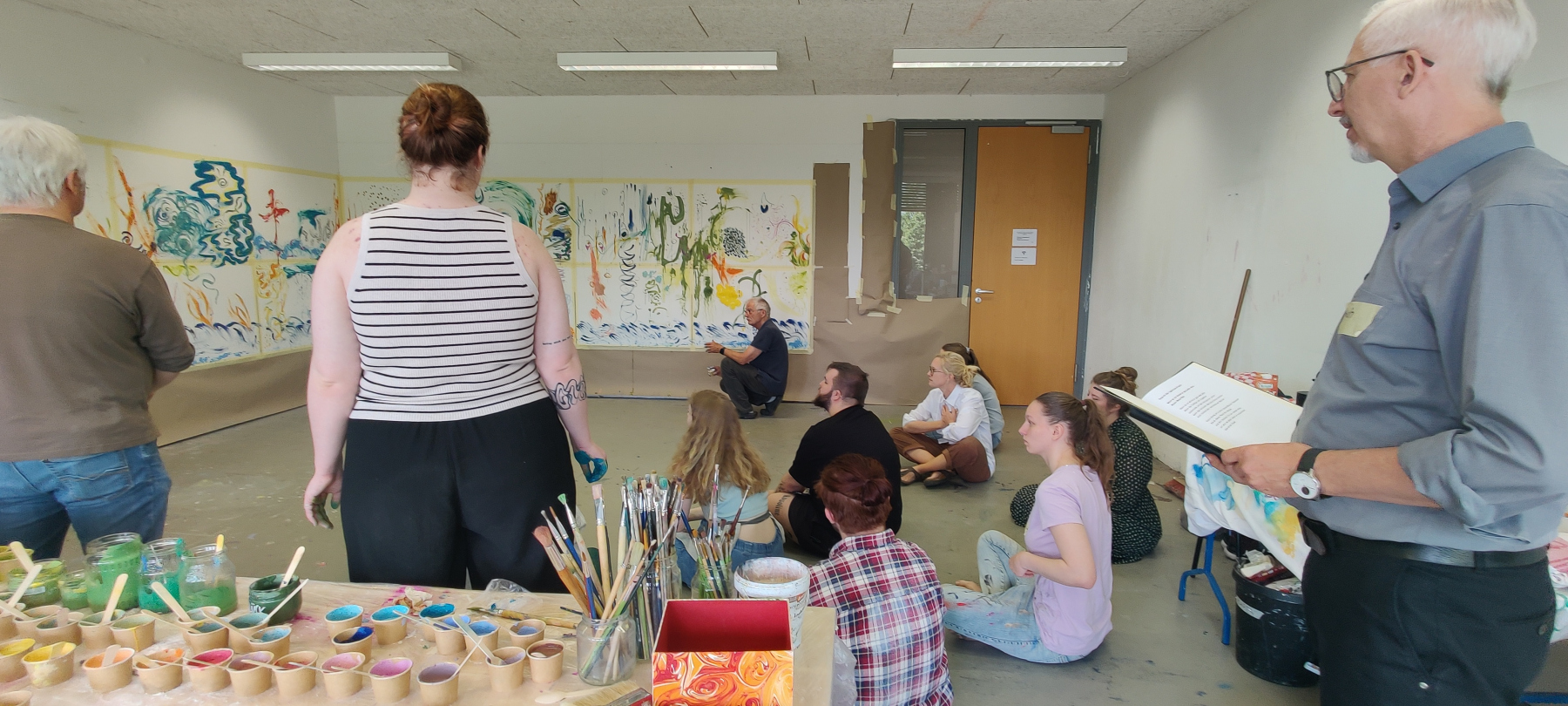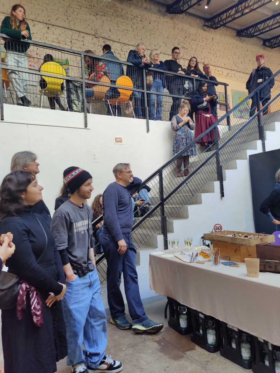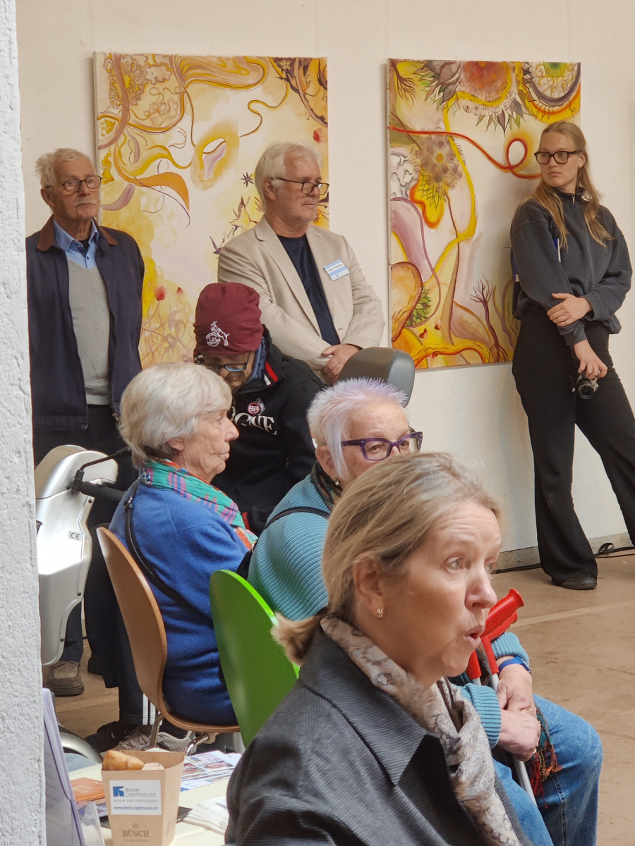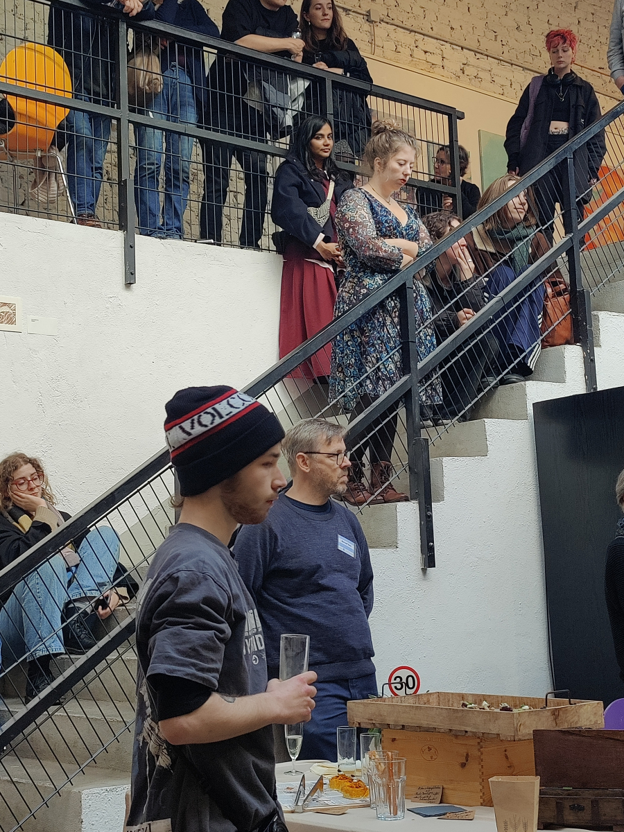 Der Abend stand im Zeichen von Gemeinschaft, Kreativität und Engagement. Neben einer Lesung von Wolf Küper aus seinem noch unveröffentlichten Buch und eindrucksvoller Musik von Igor und Lisa Lazarev beeindruckte besonders die Ausstellung, die in Kooperation mit der Alanus Hochschule für Kunst und Gesellschaft entstanden ist.