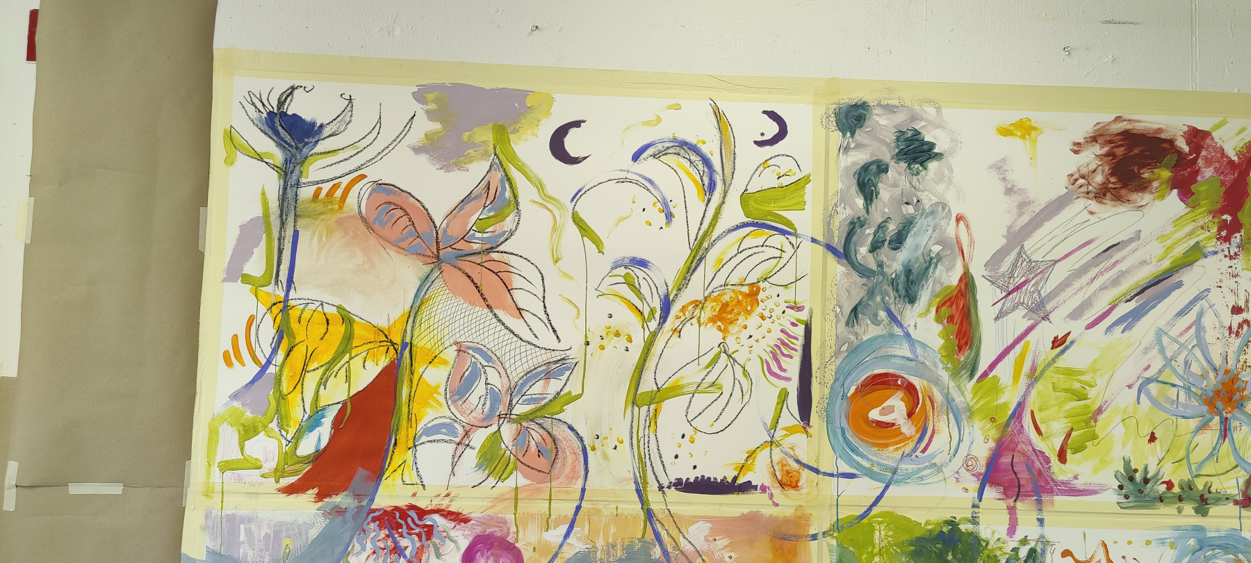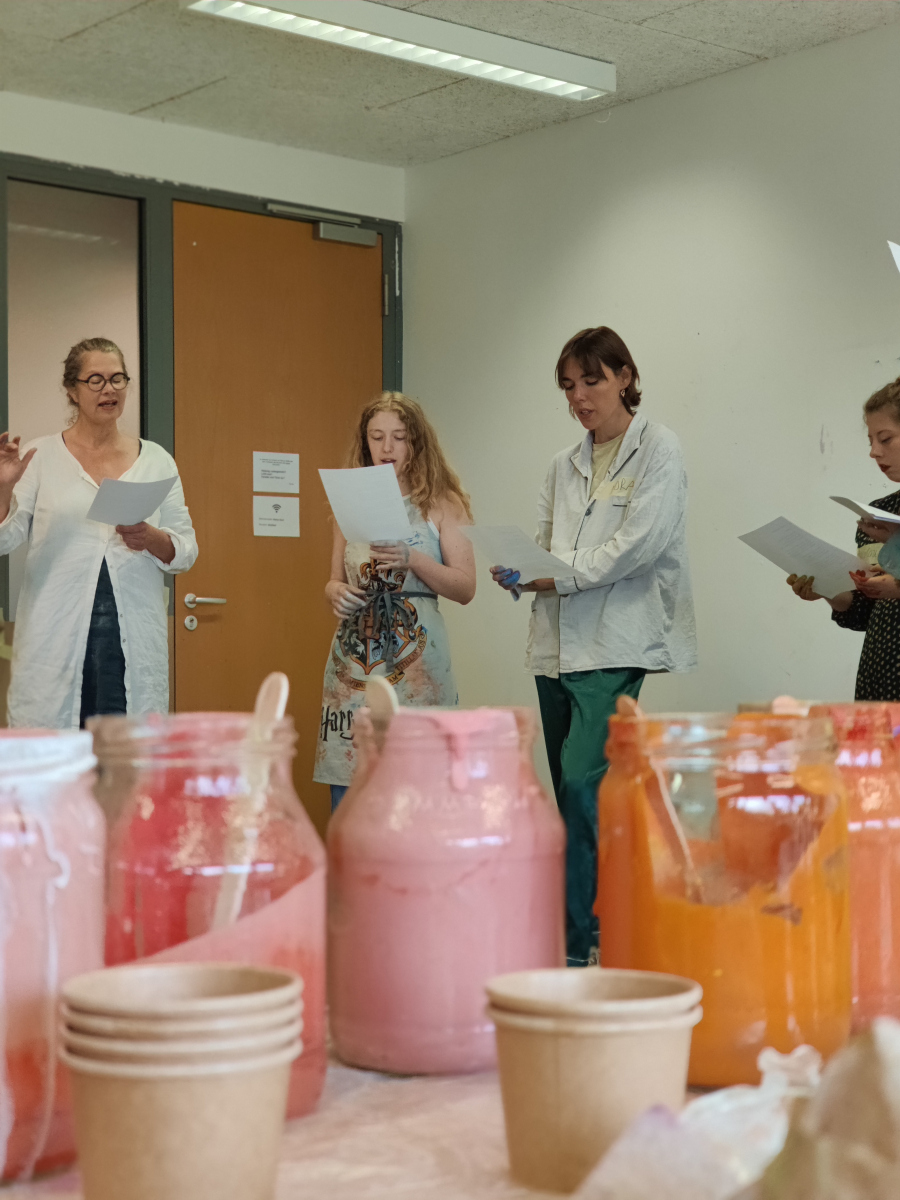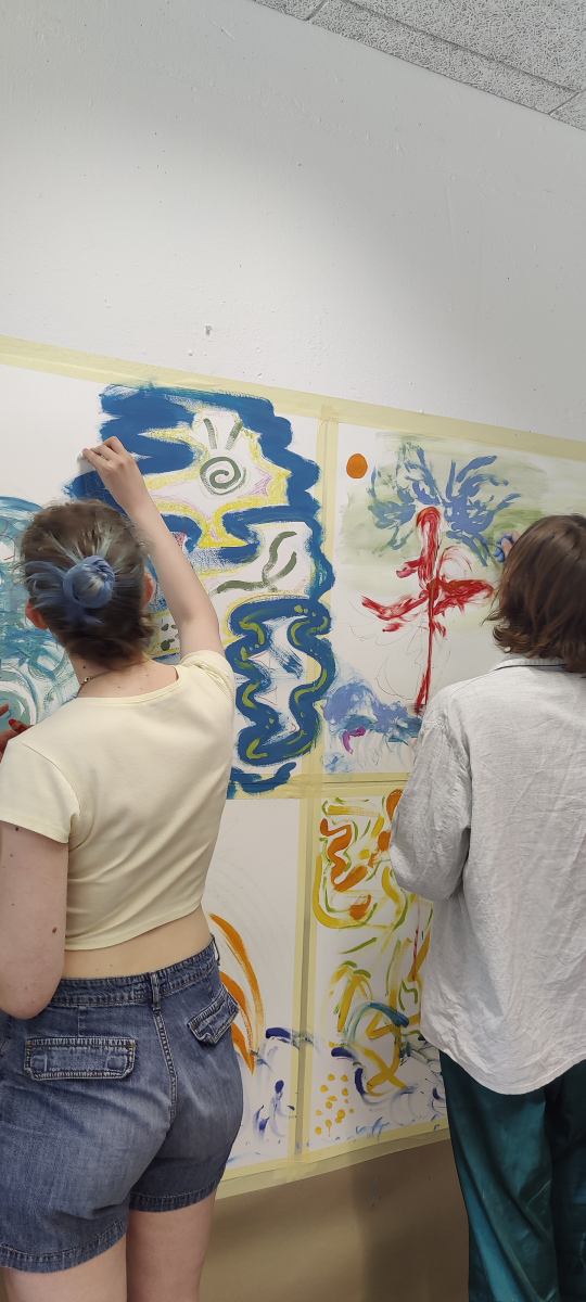 Im Rahmen eines gemeinsamen Projekttages im Mai 2025, mit ehrenamtlichen Mitarbeitenden von Bonn Lighthouse, entwickelten Studierende die Grundideen einer Malperformance. Aus diesen Begegnungen entstanden im Laufe des Semesters individuelle Werke, in denen Linien und Flächen zu Sinnbildern für Wandel, Stille und innere Bewegung wurden.